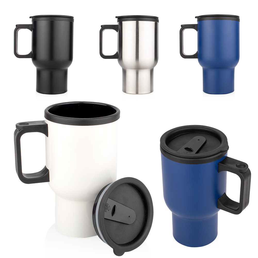 Vaso fabricado en acero inoxidable, con tapa de cierre giratorio y boquilla con. Capacidad: 400 ml / 13 Oz.