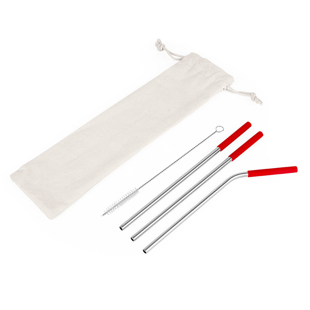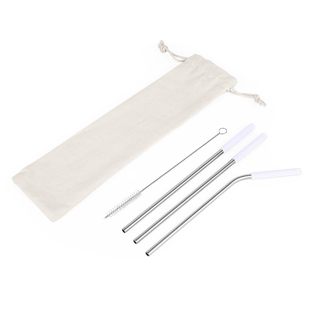 Set de pitillos ecológicos x 3 und (uno de ellos es curvo), con boquilla en silicona, cepillo para.