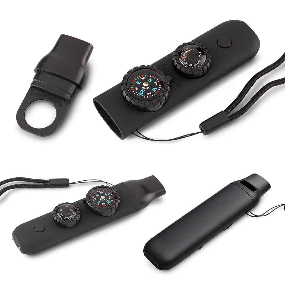 Pito 5 - 1 nuevo Pito plastico 5 en 1 con brujula termometro lupay linterna con 2 leds (funciona con 3 pilas de