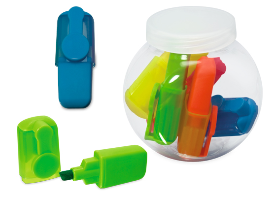 Bolígrafo con resaltador en parafina que no se seca. Doble tapa.